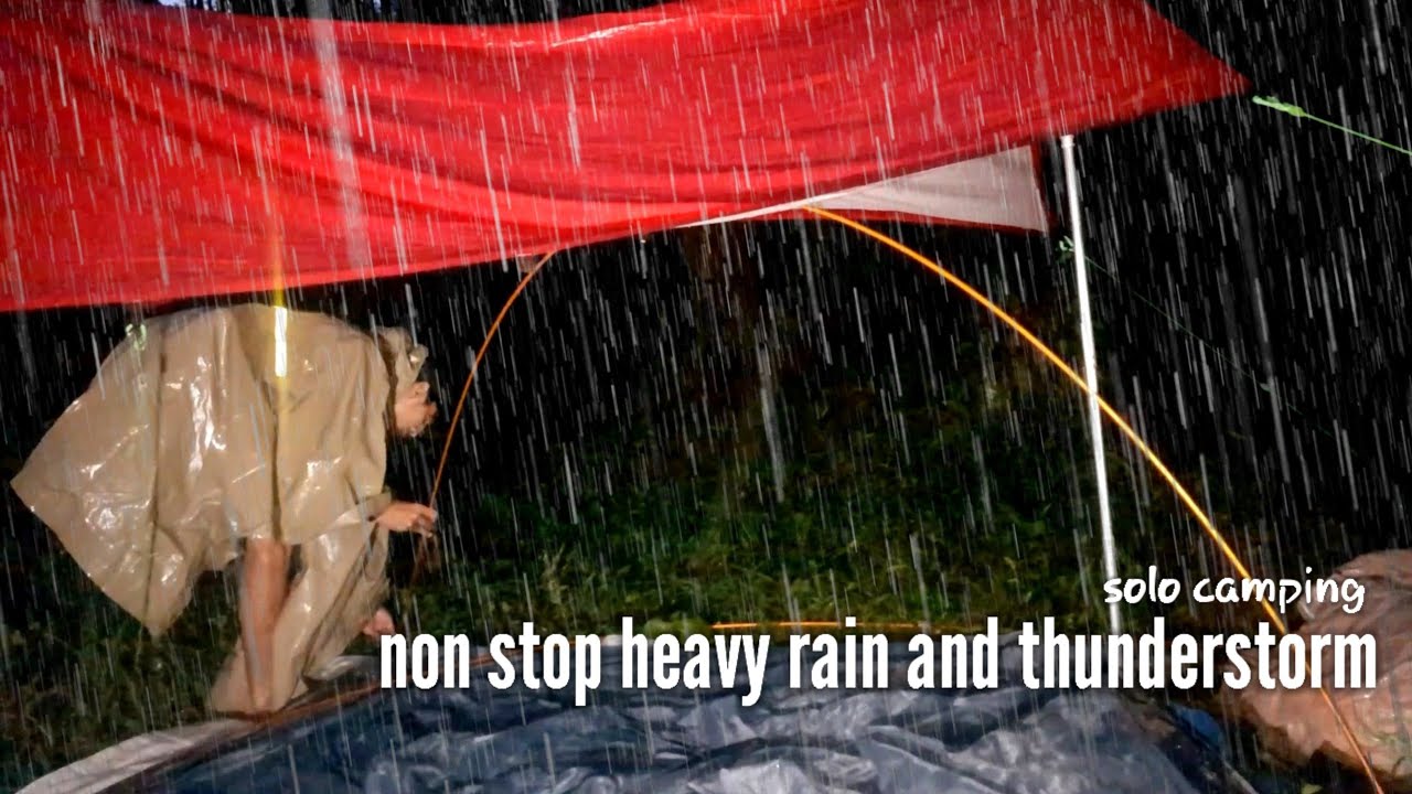 solo camping in heavy rain and thunder storm ● non stop rain for RELAXING ● asmr