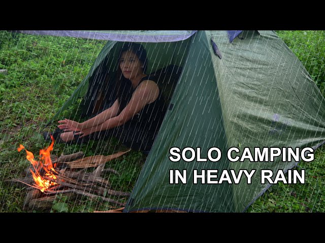 Solo camping in heavy rain – Relax & Camping in Real Rain – ASMR, Cooking, Relaxing